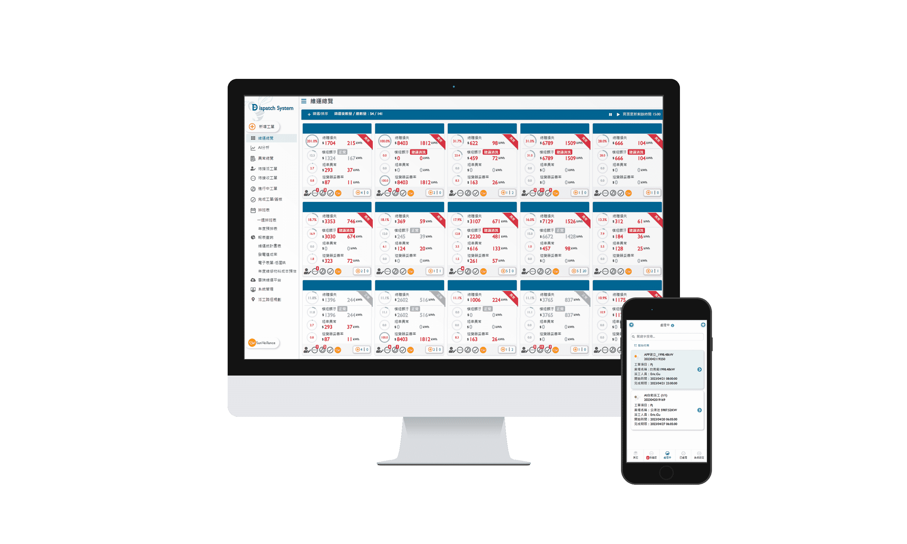 全流程运维管理包括云端监控工具、、、AI分析与智慧自动派工及运维APP,,实现电厂自主管理。。。