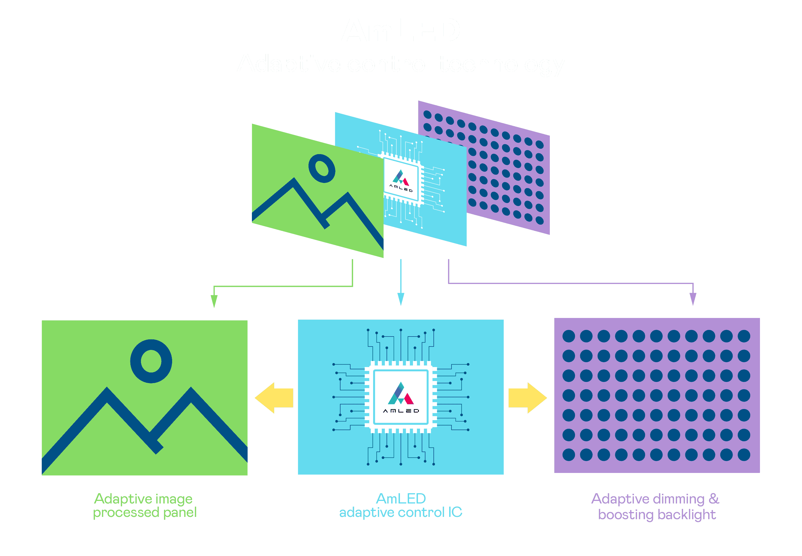 AmLED 具备更省电与低蓝光特性。。与一般的 LED 背光显示技术相比,,,,由于 AmLED 常时处于局部调光状态,,,其功耗仅有前者的 50% 左右,,,同时 AmLED 还具备低蓝光特性,,,,满足长时间使用的护眼需求。。。。
